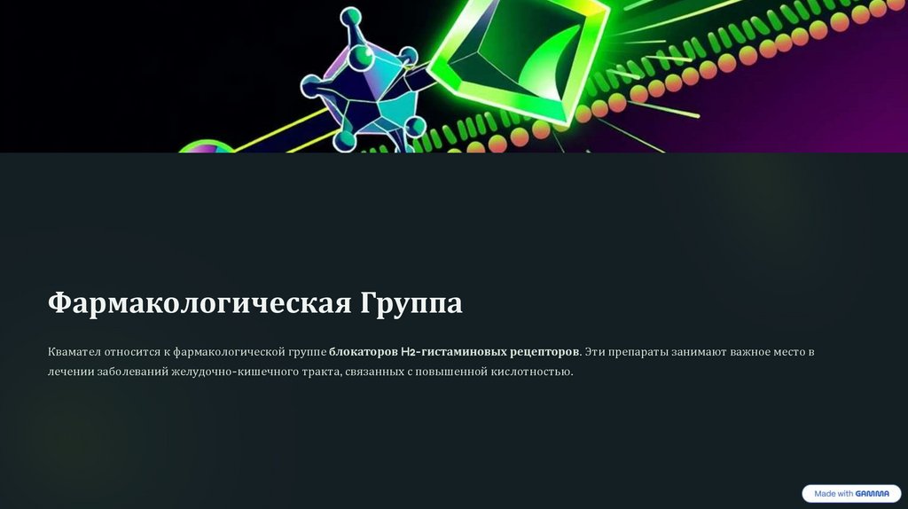 Фармакологическая ГруппаКвамател относится к фармакологической группе блокаторов H2-гистаминовых рецепторов. Эти препараты занимают важное место в