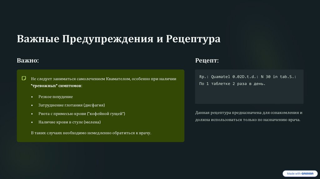 Не следует заниматься самолечением Квамателом, особенно при наличии