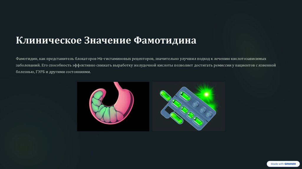 Клиническое Значение ФамотидинаФамотидин, как представитель блокаторов H2-гистаминовых рецепторов, значительно улучшил подход к лечению кислотозависимых