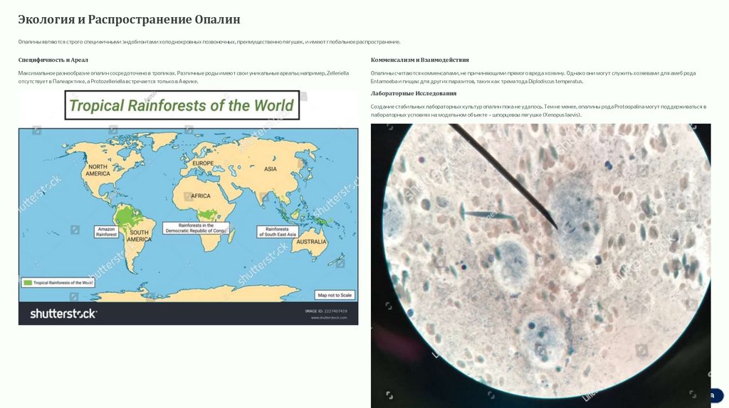 Экология и Распространение ОпалинОпалины являются строго специфичными эндобионтами холоднокровных позвоночных, преимущественно лягушек, и имеют глобальное распространение.