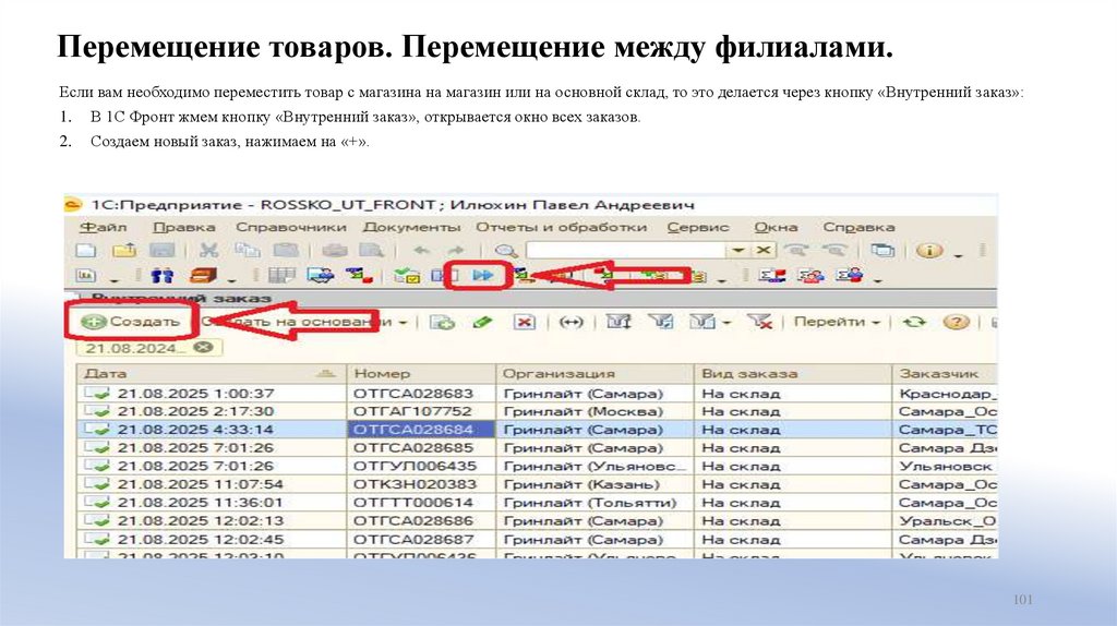 Перемещение товаров ……………………………………………………………………………………………...............100