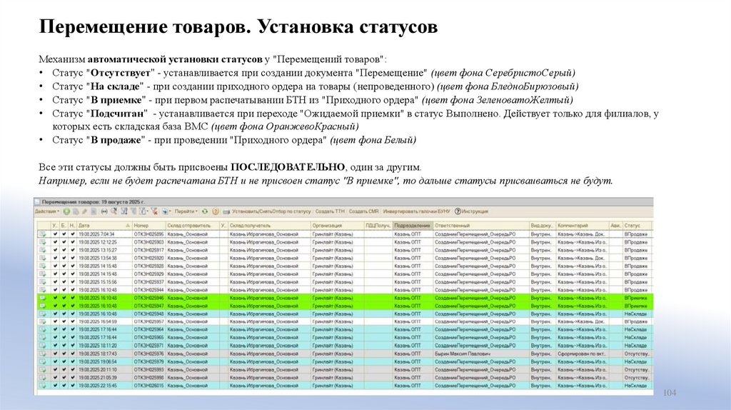 Прием товара на склад. Статус перемещения «На складе» …………………………………………………………....61