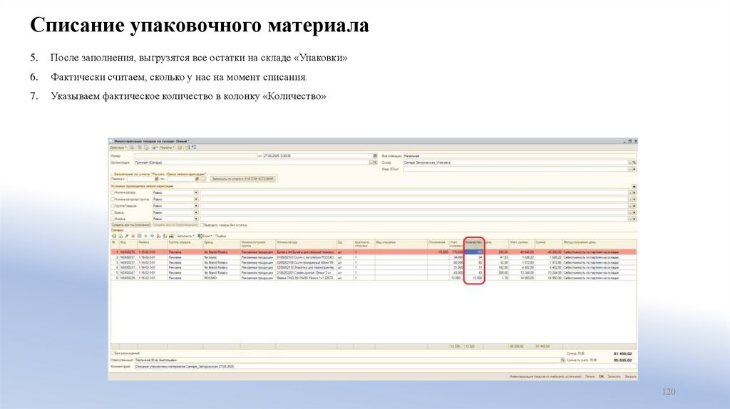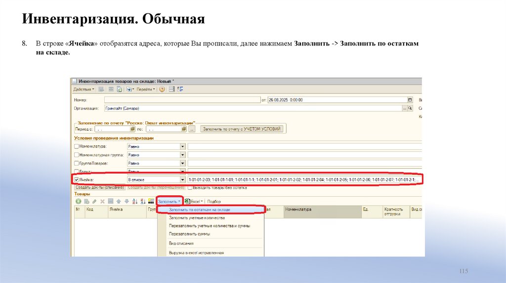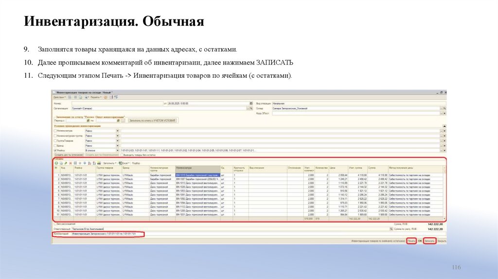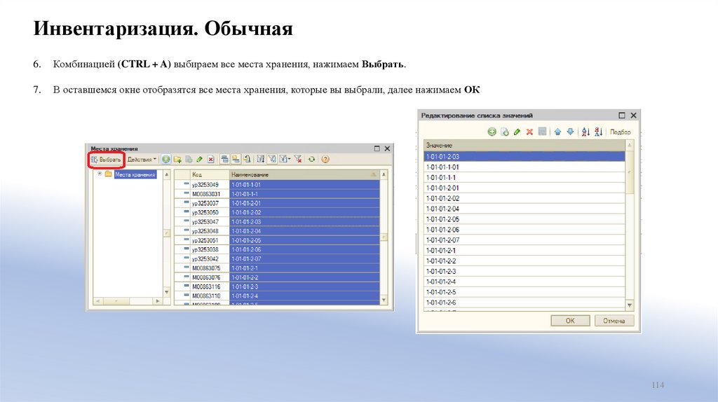Инвентаризация (Выборочная\по местам хранения) …………………………………………………………………….112