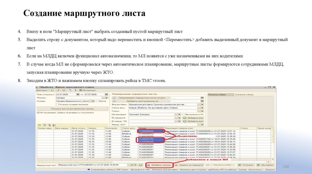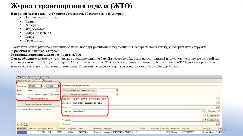 Журнал транспортного отдела (ЖТО)…………………………………………………………………………………...57