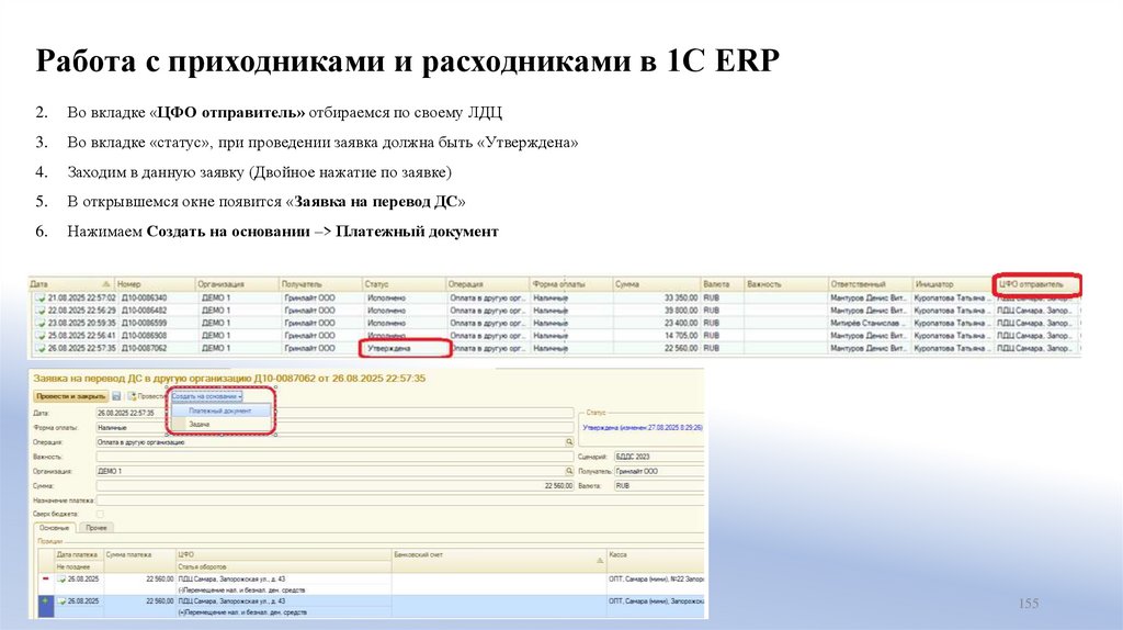 1.1C. ERP (TF.ROSSKO.RU) -> Казначейство (БИТ) -> Заявки на перевод ДС в другую организацию