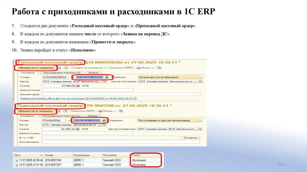 Если все сходится то создаем Расходный и Приходный кассовые ордера.