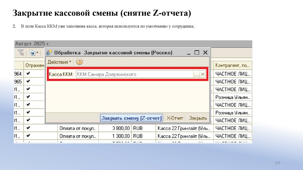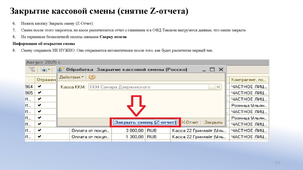 164. Закрытие кассовой смены (снятие Z-отчета)