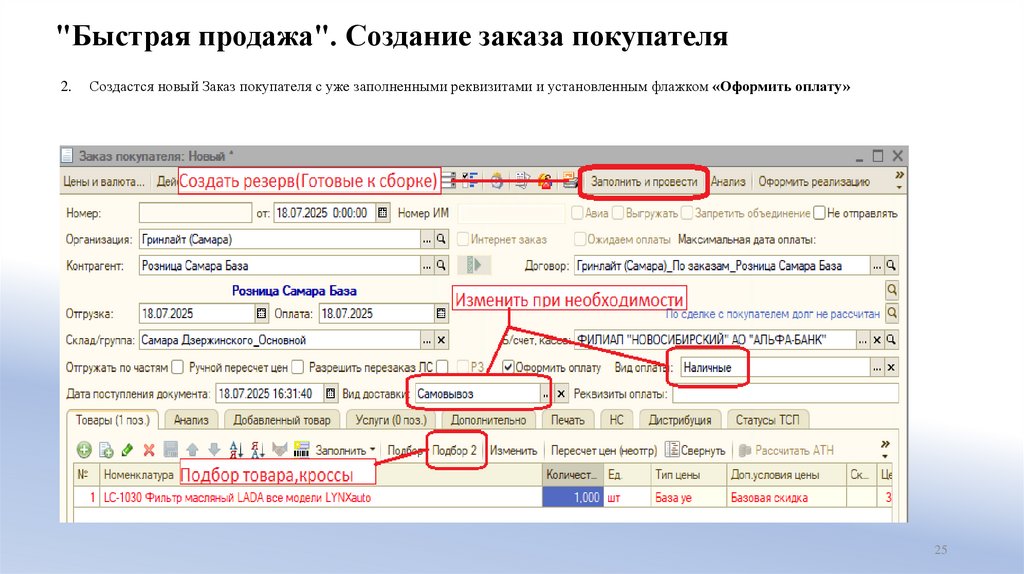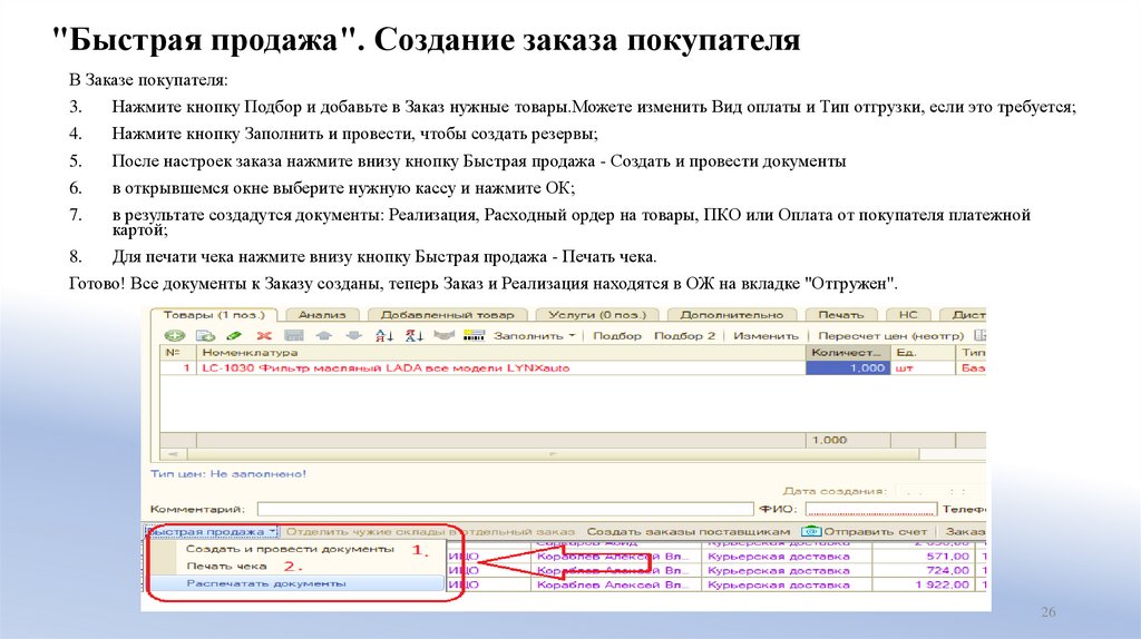 "Быстрая продажа". Создание заказа покупателя ……………………………………………………………………..24