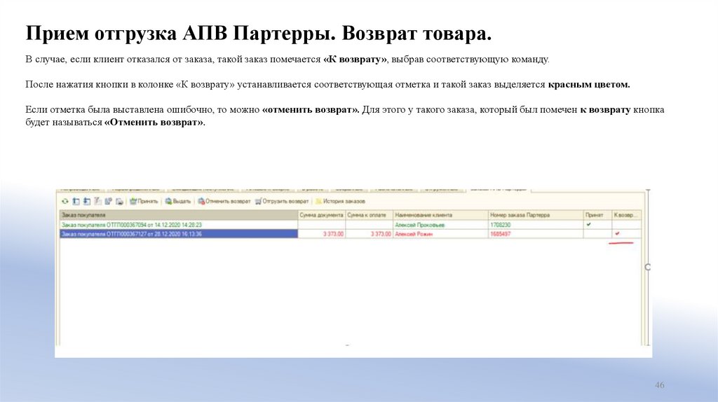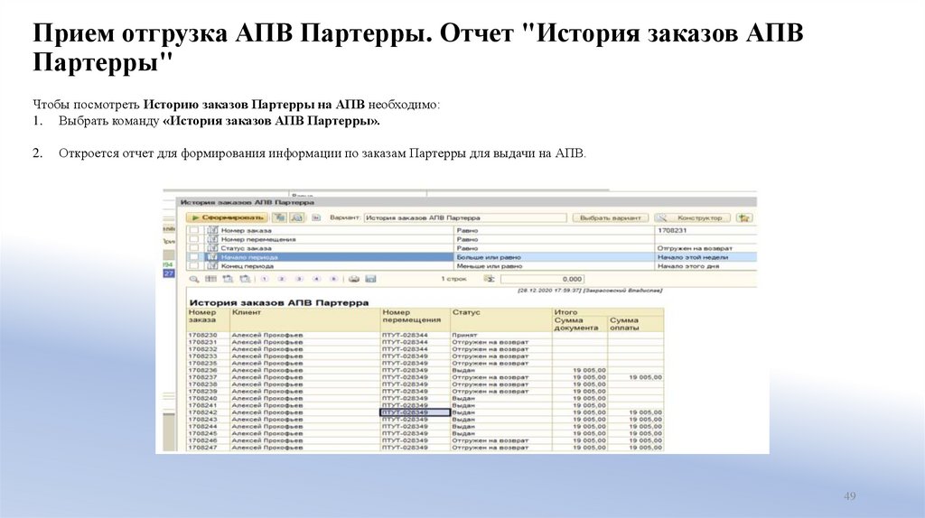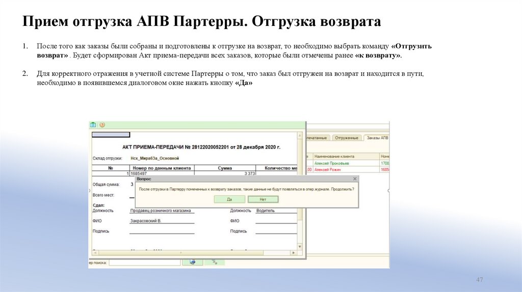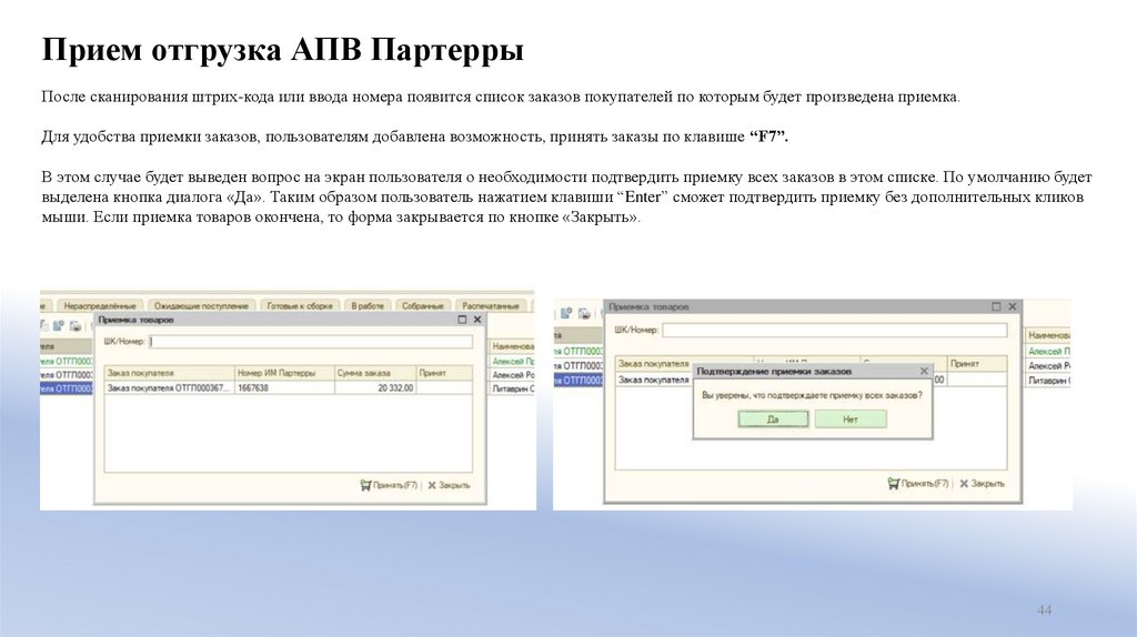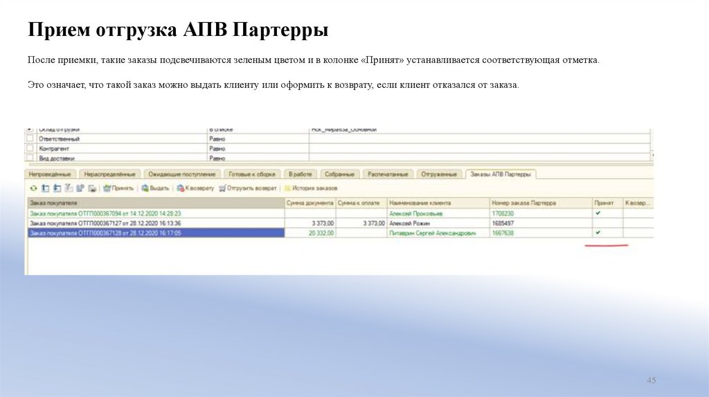 Прием/отгрузка АПВ Партерры …………………………………………………………………………………………44