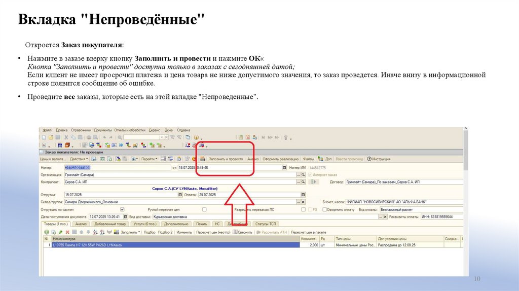 Вкладка «Непроведённые» ………………………………………………………………………………………………9