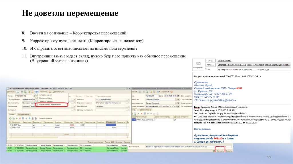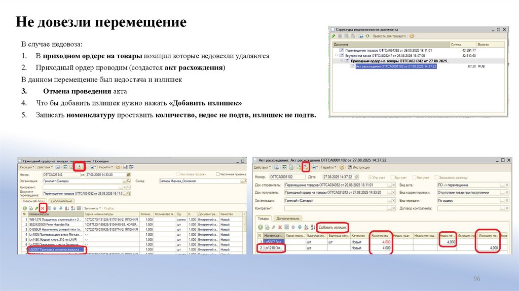 Не довезли перемещение (какие действия) ……………………………………………………………………………….96