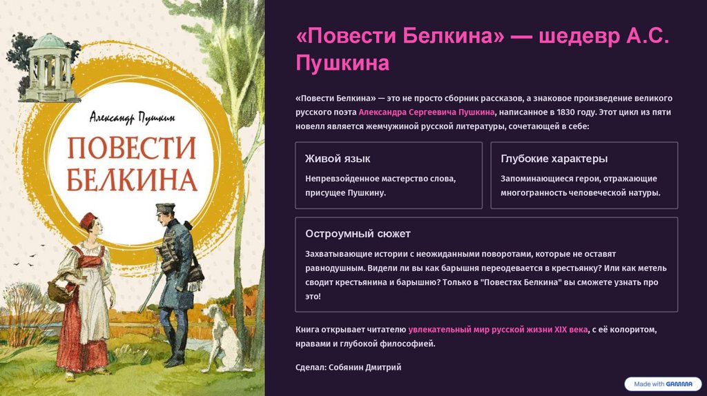 «Повести Белкина» — это не просто сборник рассказов, а знаковое произведение великого