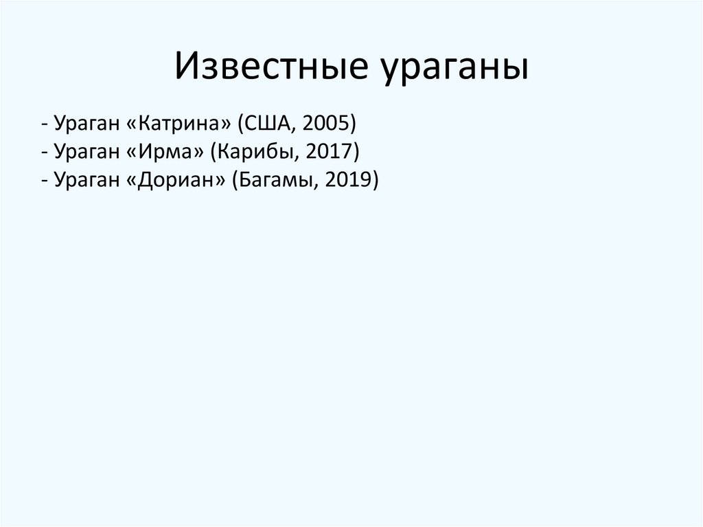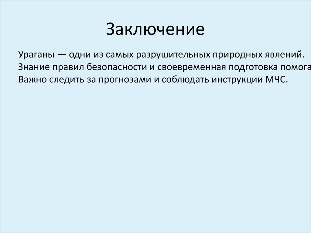 ЗаключениеУраганы — одни из самых разрушительных природных явлений.