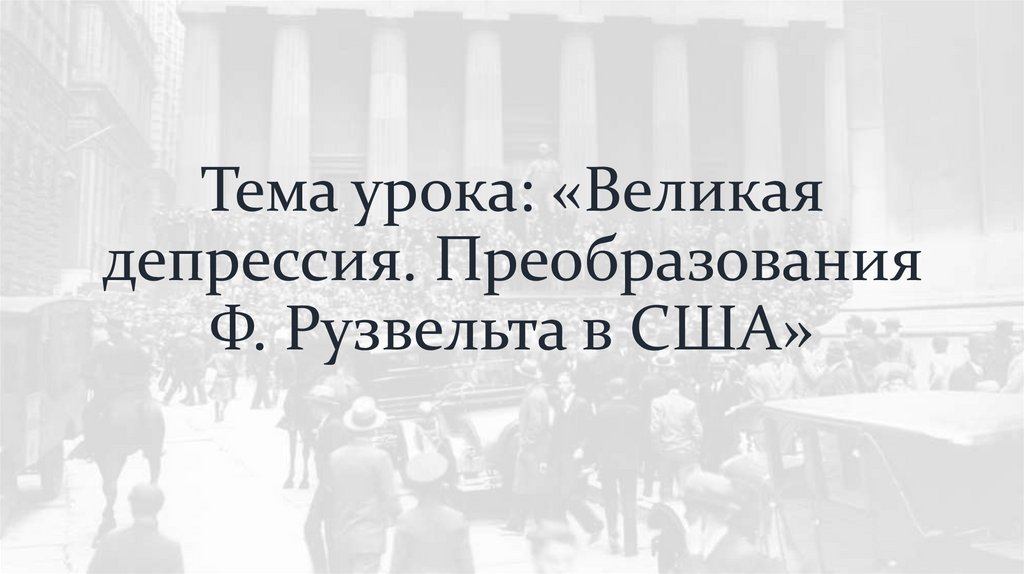 1. Тема урока: «Великая депрессия. Преобразования Ф. Рузвельта в США»