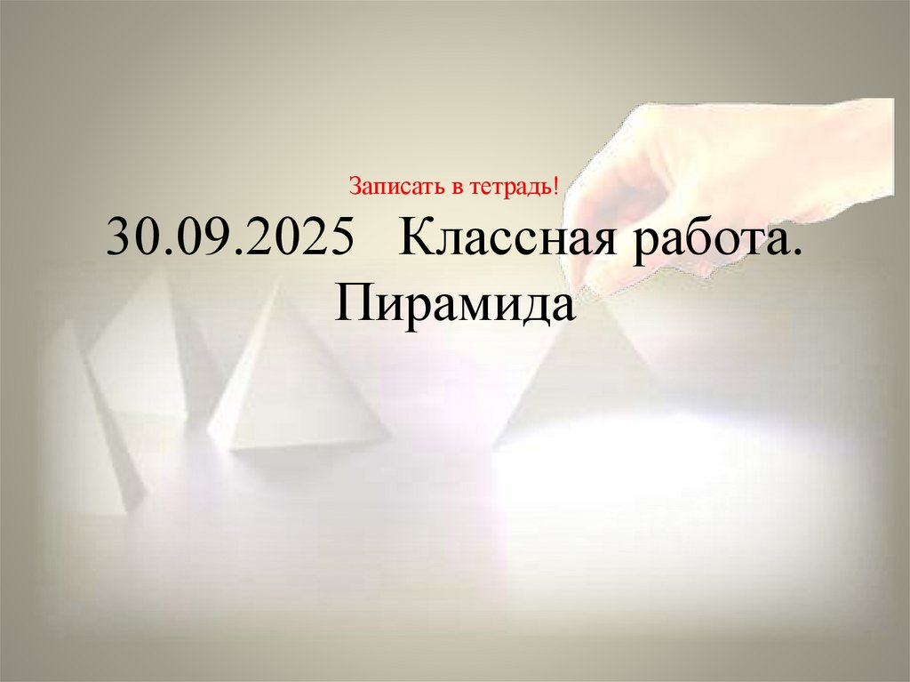 1. Записать в тетрадь! 30.09.2025 Классная работа. Пирамида