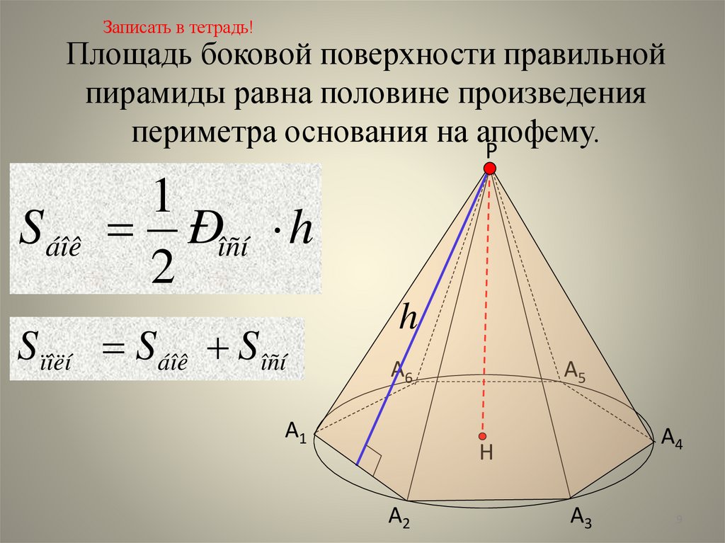 Записать в тетрадь!Площадь боковой поверхности правильной