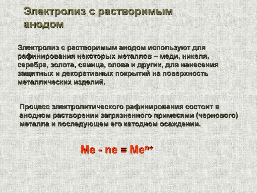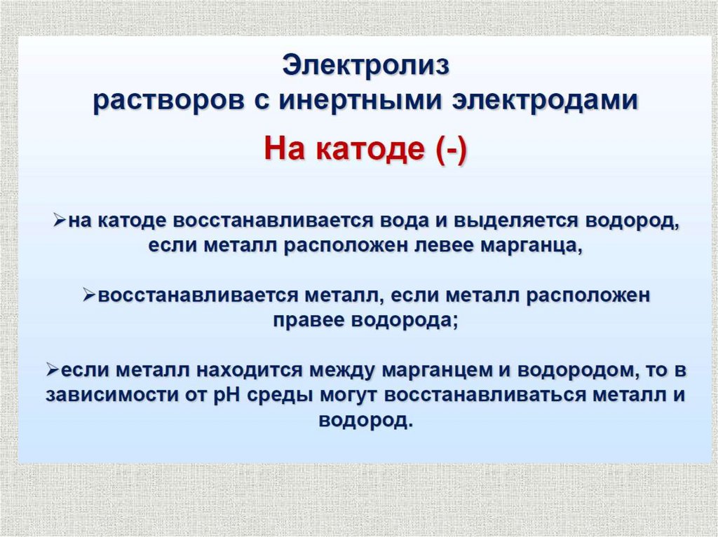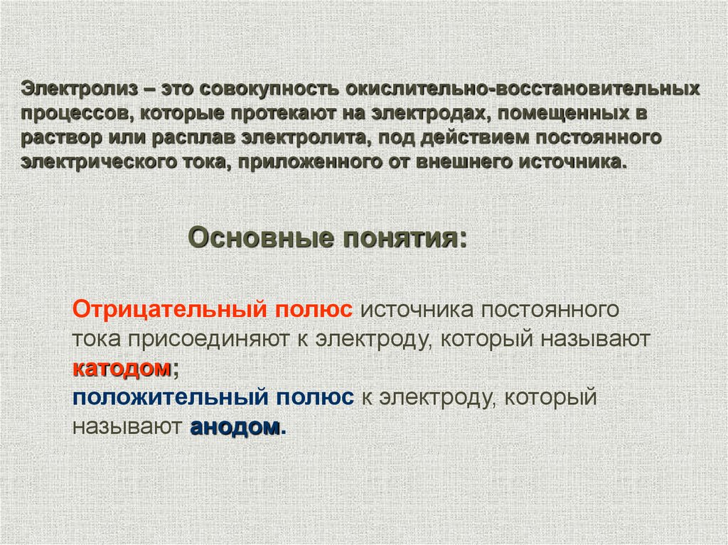 Электролиз – это совокупность окислительно-восстановительныхпроцессов, которые протекают на электродах, помещенных в