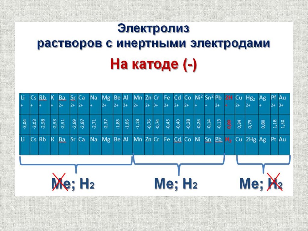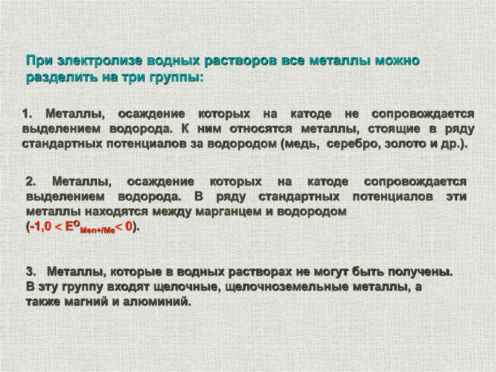 При электролизе водных растворов все металлы можноразделить на три группы: