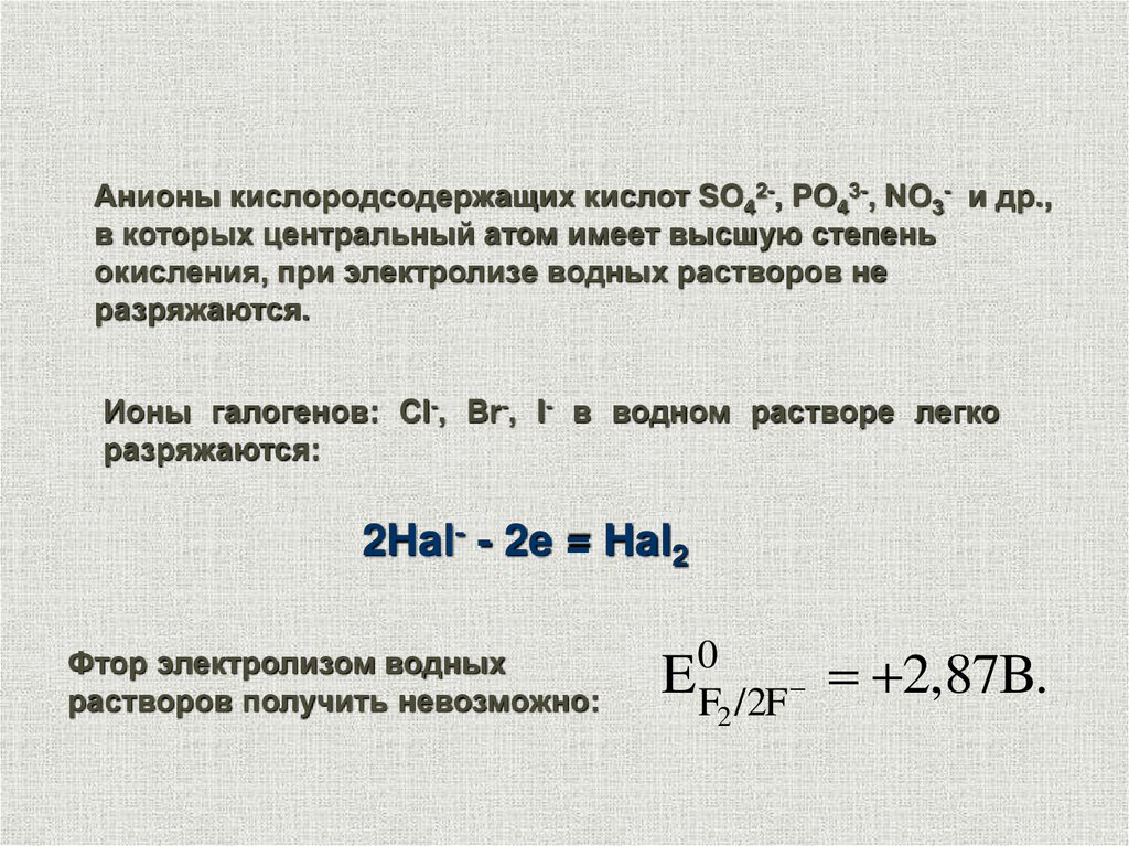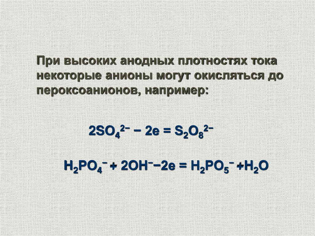 Пpи высоких анодных плотностях токанекотоpые анионы могут окисляться до
