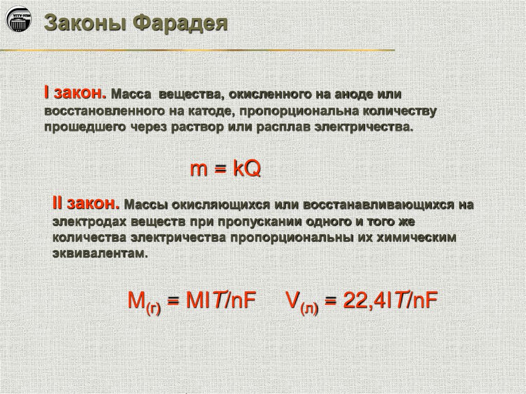 Законы ФарадеяI закон. Масса вещества, окисленного на аноде или