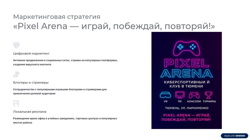 Маркетинговая стратегия«Pixel Arena — играй, побеждай, повторяй!»