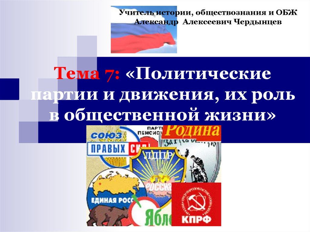 1. Тема 7: «Политические партии и движения, их роль в общественной жизни»