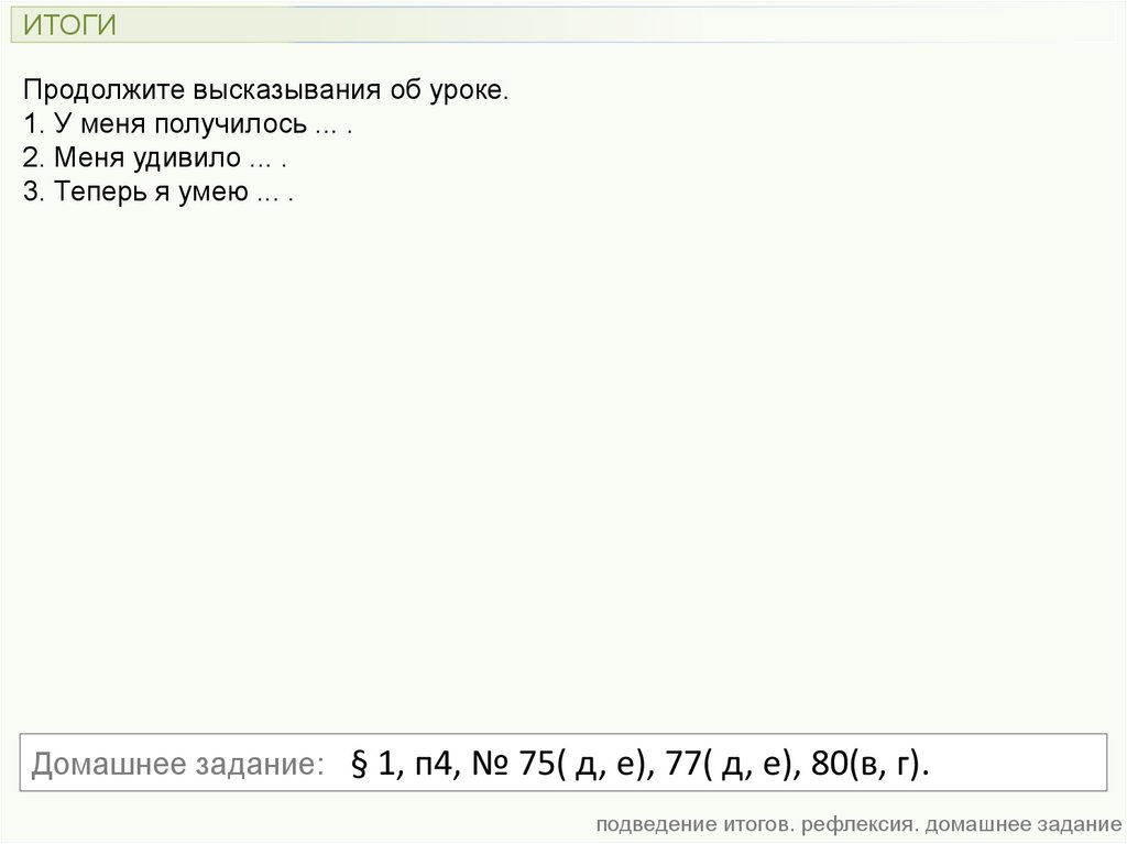 подведение итогов. рефлексия. домашнее задание