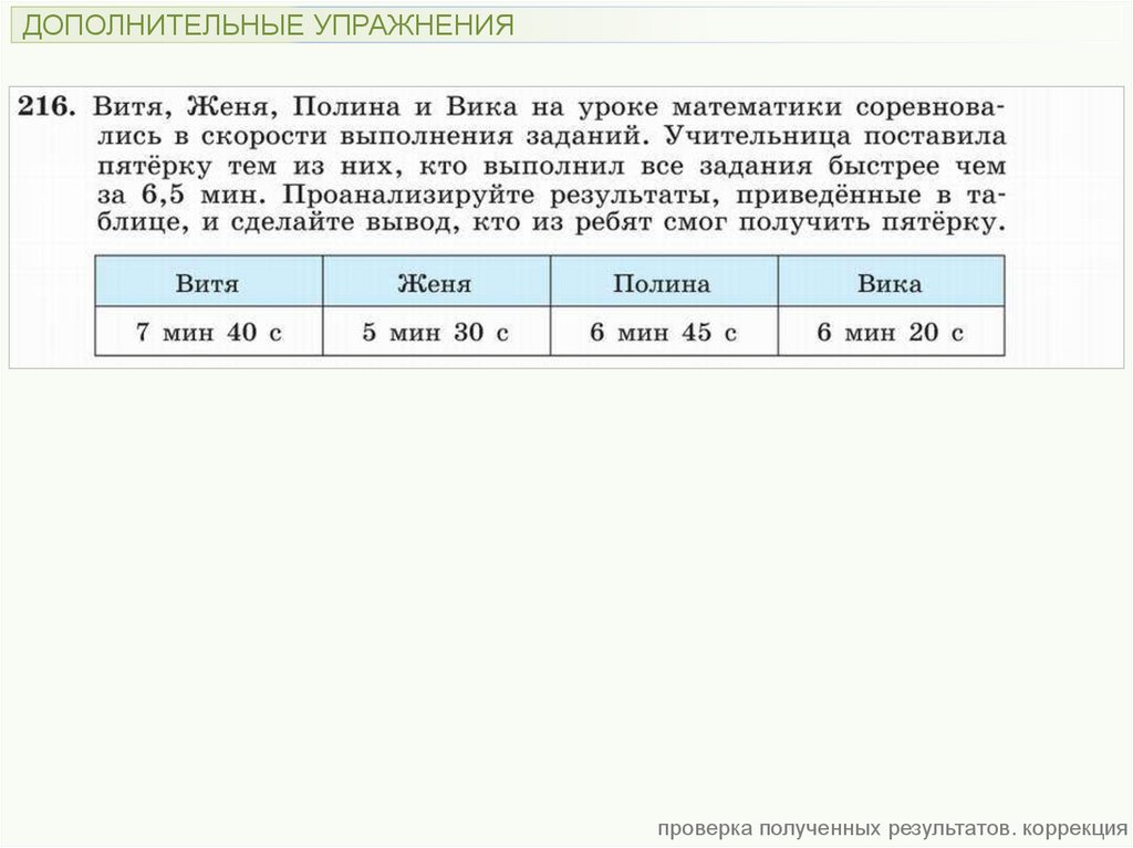 ДОПОЛНИТЕЛЬНЫЕ УПРАЖНЕНИЯпроверка полученных результатов. коррекция
