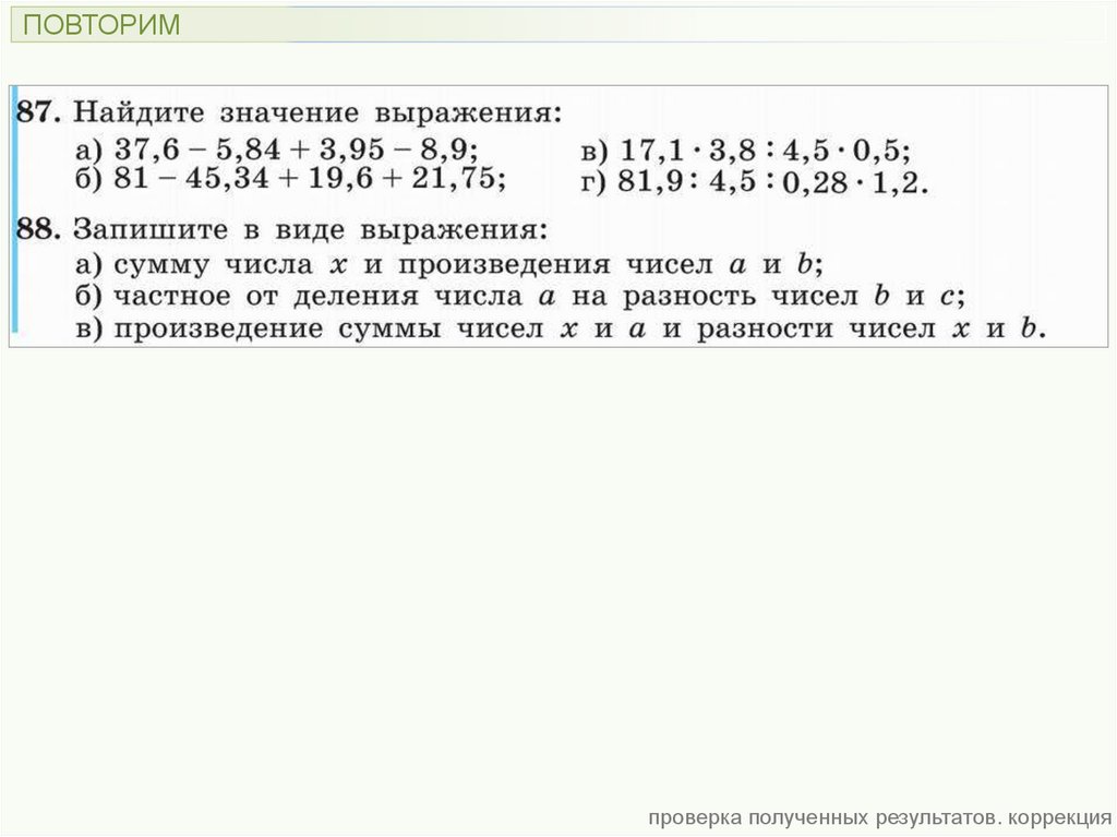 ПОВТОРИМпроверка полученных результатов. коррекция