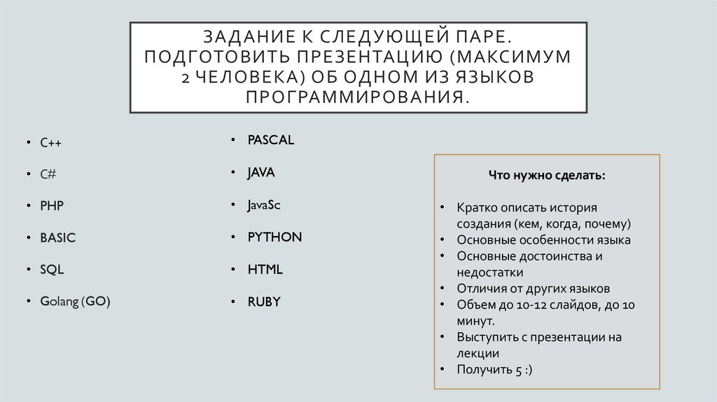 ЗАДАНИЕ К СЛЕДУЮЩЕЙ ПАРЕ.ПОДГОТОВИТЬ ПРЕЗЕНТАЦИЮ (МАКСИМУМ