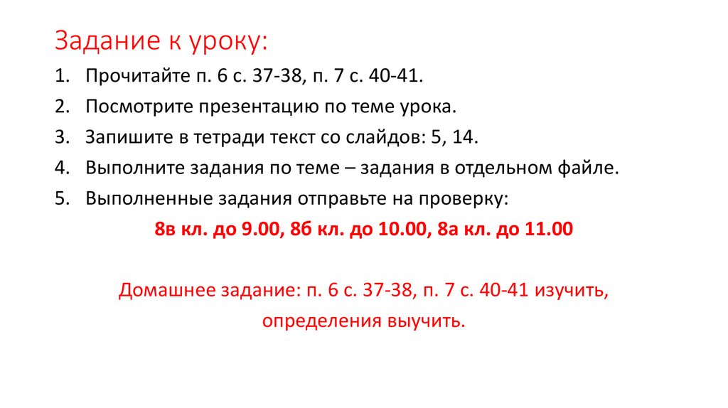 Домашнее задание: п. 6 с. 37-38, п. 7 с. 40-41 изучить,