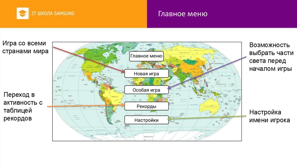 Всего в игре насчитывается 192 страны, столицы и флага из 5 частей света.