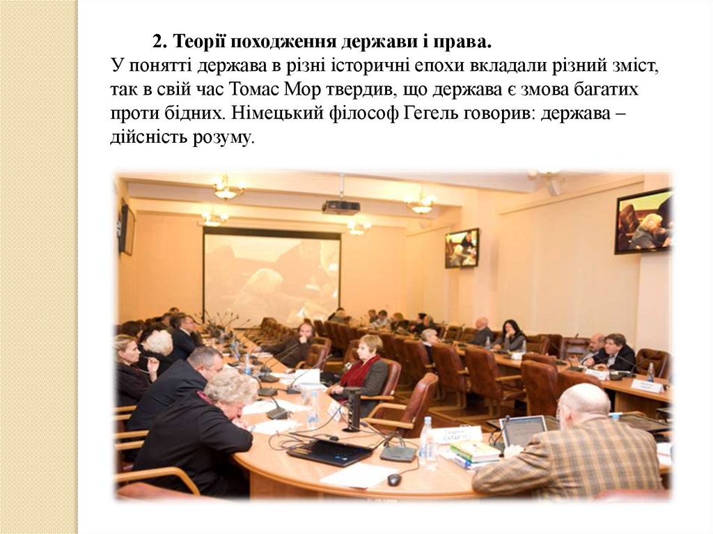 2. Теорії походження держави і права.У понятті держава в різні історичні епохи вкладали різний зміст,