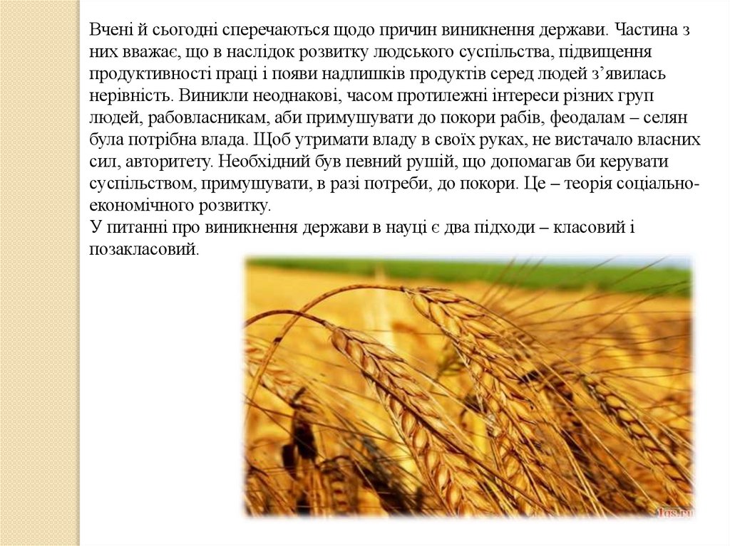 У питанні про виникнення держави в науці є два підходи – класовий і