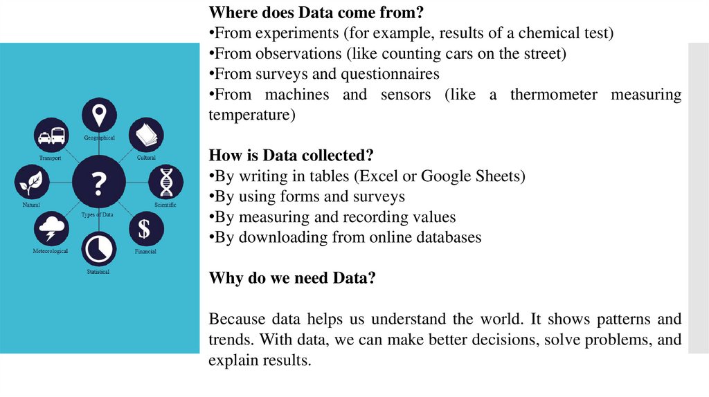 Where does Data come from?•From experiments (for example, results of a chemical test)