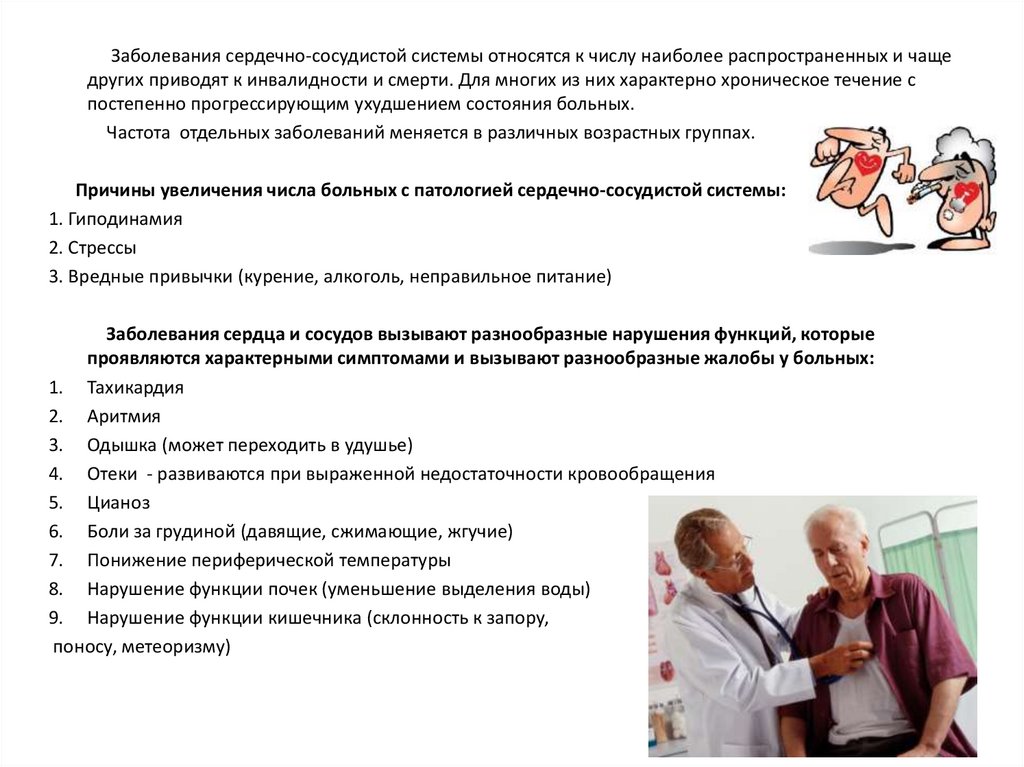 Заболевания сердца и сосудов вызывают разнообразные нарушения функций, которые