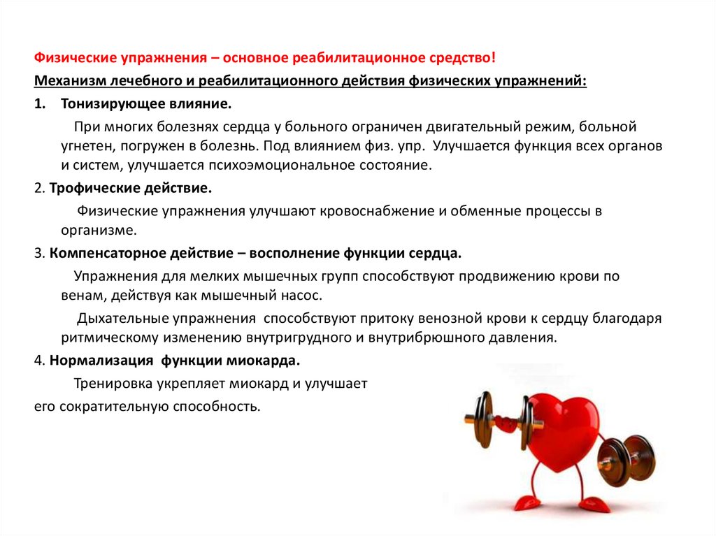 Физические упражнения – основное реабилитационное средство!Механизм лечебного и реабилитационного действия физических упражнений: