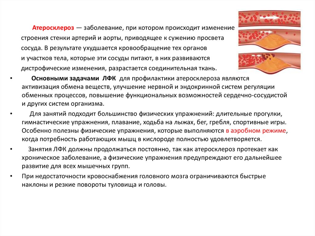 Занятия ЛФК должны продолжаться постоянно, так как атеросклероз протекает как