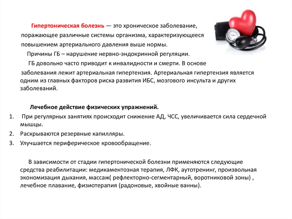 хроническое заболевание, а физические упражнения предупреждают его дальнейшее