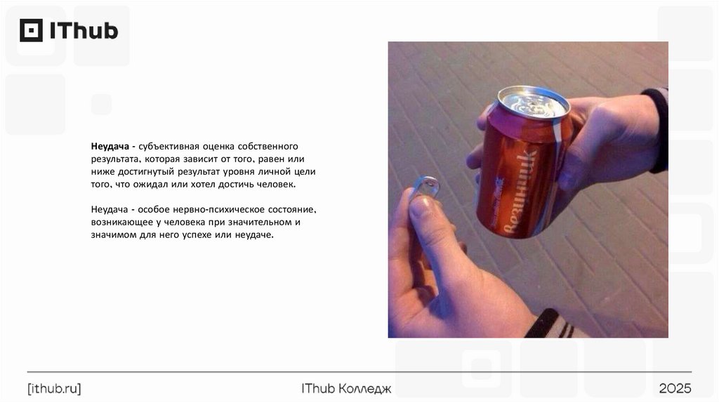Неудача - субъективная оценка собственногорезультата, которая зависит от того, равен или