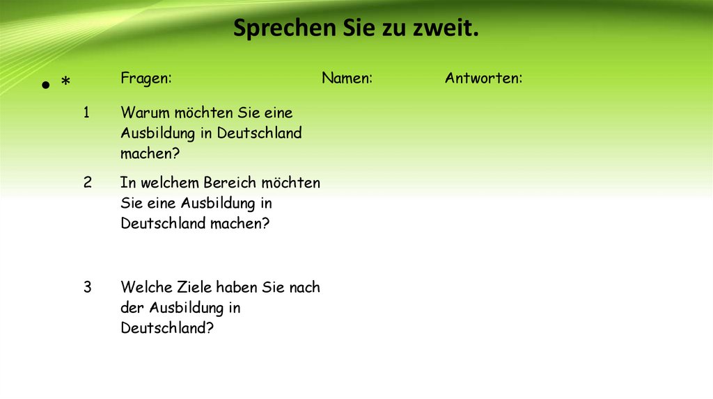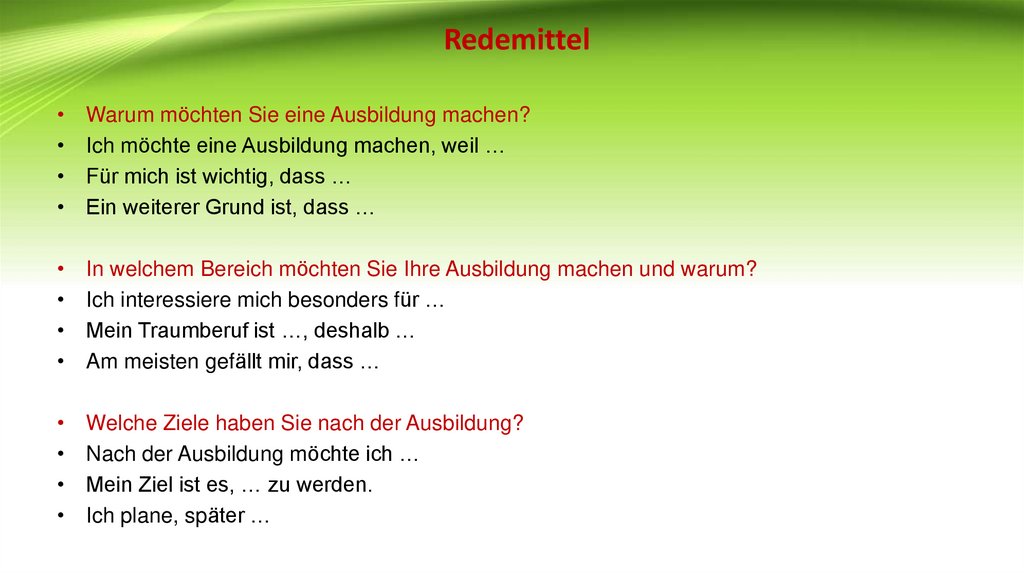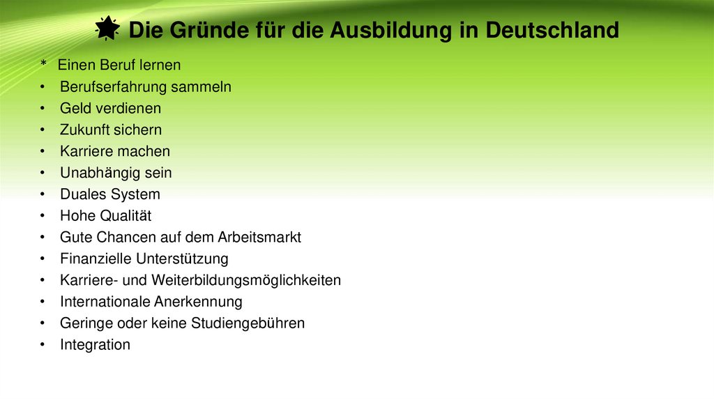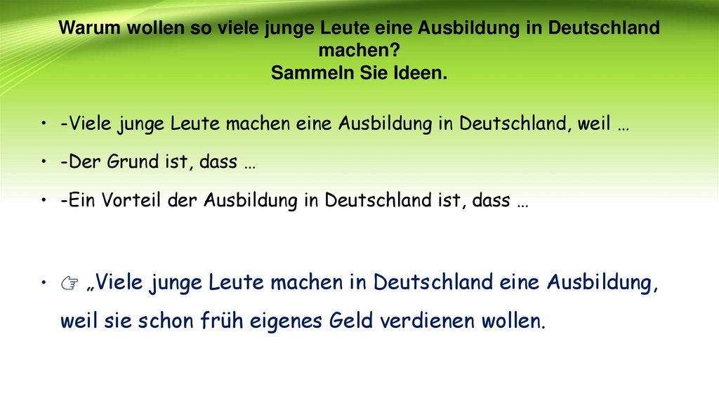• -Viele junge Leute machen eine Ausbildung in Deutschland, weil …