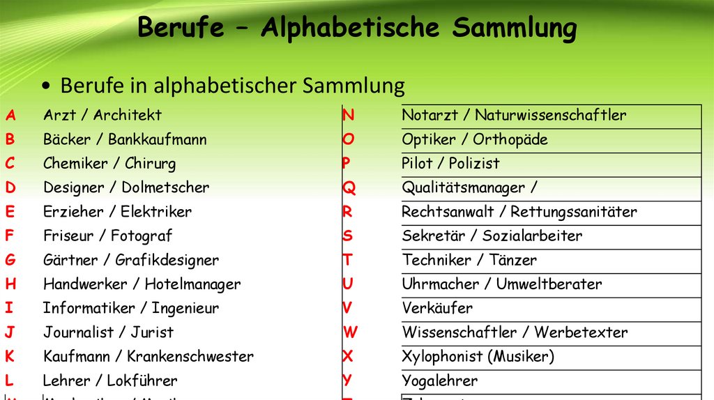 Berufe – Alphabetische Sammlung• Berufe in alphabetischer Sammlung
