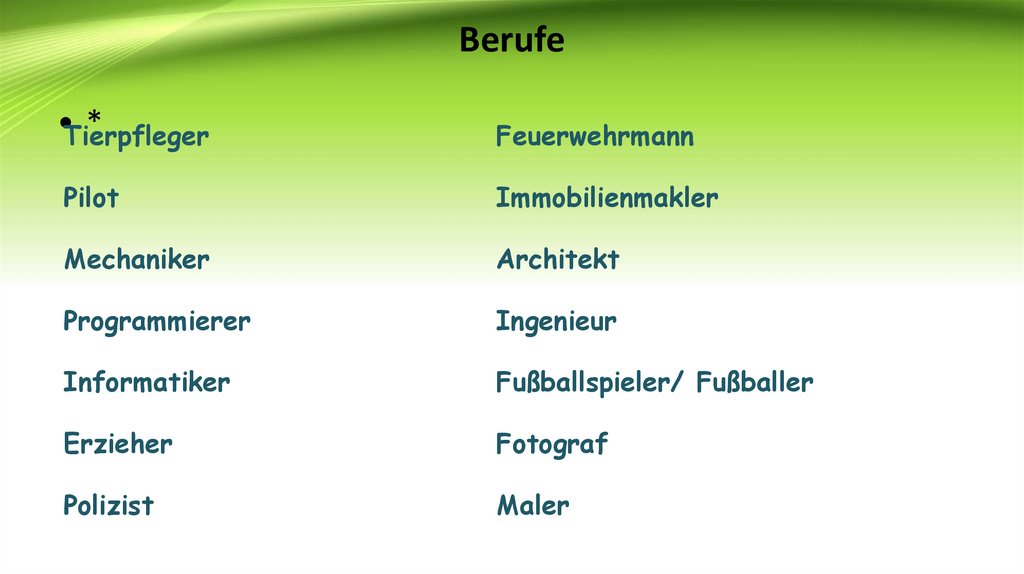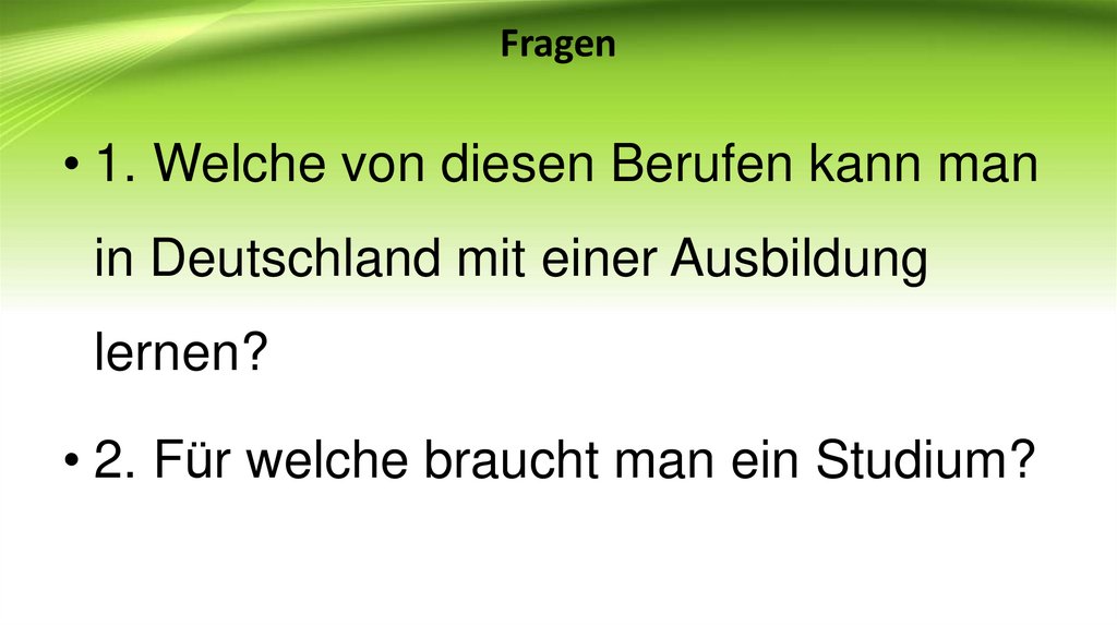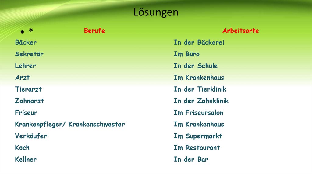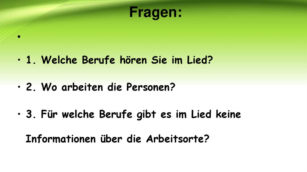 Fragen:• 1. Welche Berufe hören Sie im Lied?