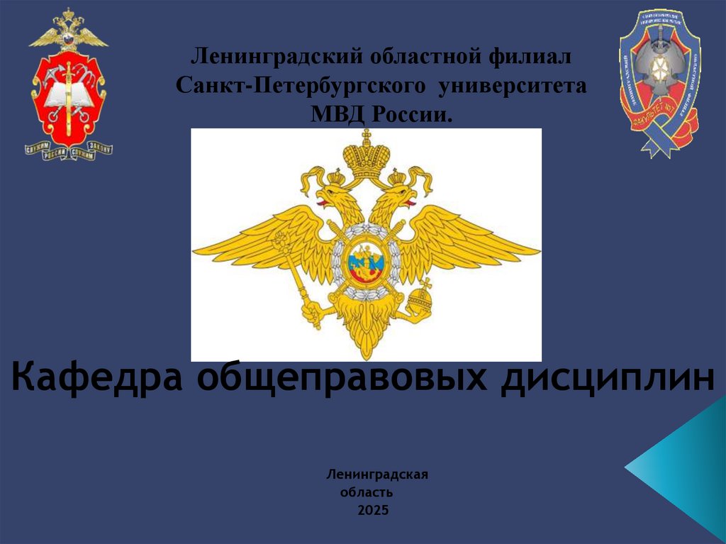 2. Ленинградский областной филиал Санкт-петербургского университета МВД России кафедра ОБЩЕПРАВОВЫХ дисциплин Презентация по