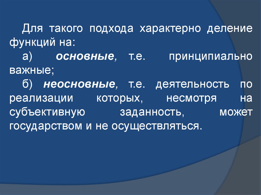 Для такого подхода характерно делениефункций на: