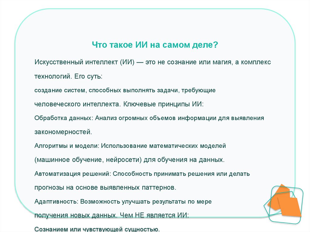 Что такое ИИ на самом деле?Искусственный интеллект (ИИ) — это не сознание или магия, а комплекс