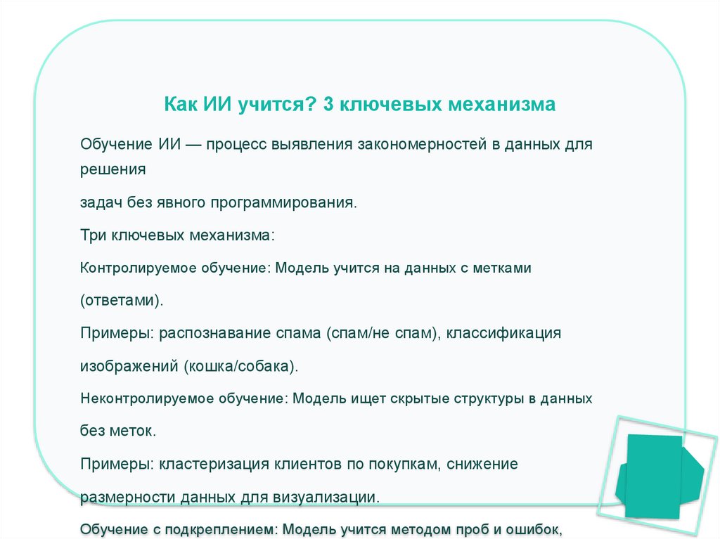 Как ИИ учится? 3 ключевых механизмаОбучение ИИ — процесс выявления закономерностей в данных для
