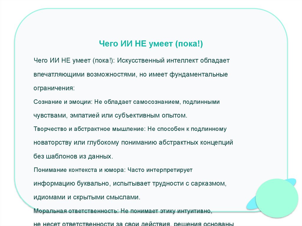 Чего ИИ НЕ умеет (пока!)Чего ИИ НЕ умеет (пока!): Искусственный интеллект обладает
