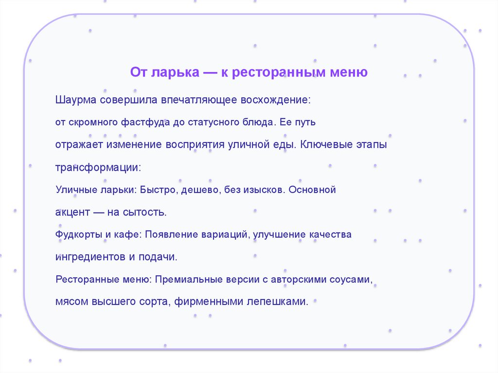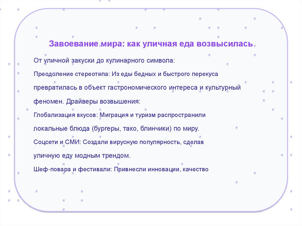 отражает изменение восприятия уличной еды. Ключевые этапы