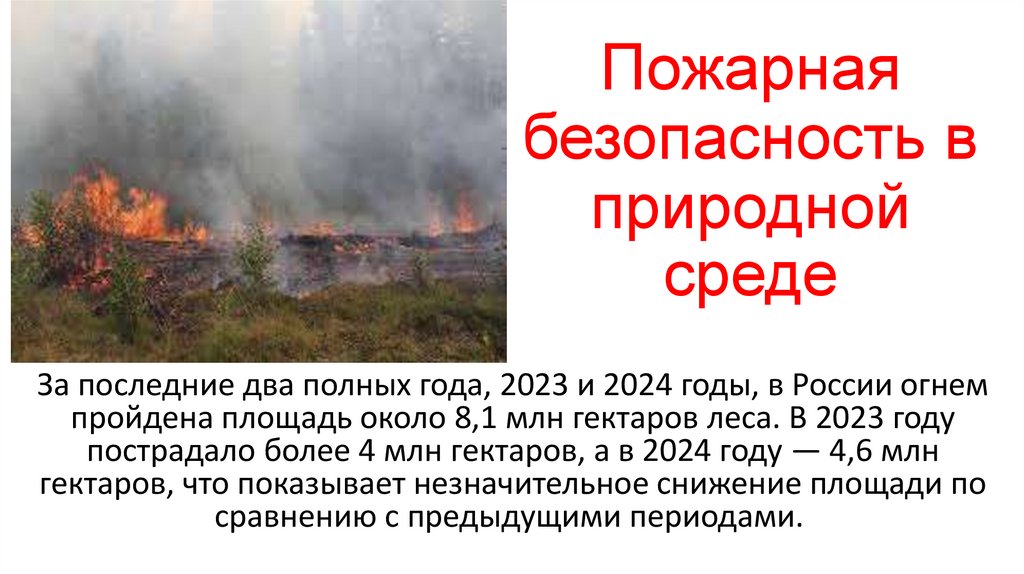 За последние два полных года, 2023 и 2024 годы, в России огнемпройдена площадь около 8,1 млн гектаров леса. В 2023 году